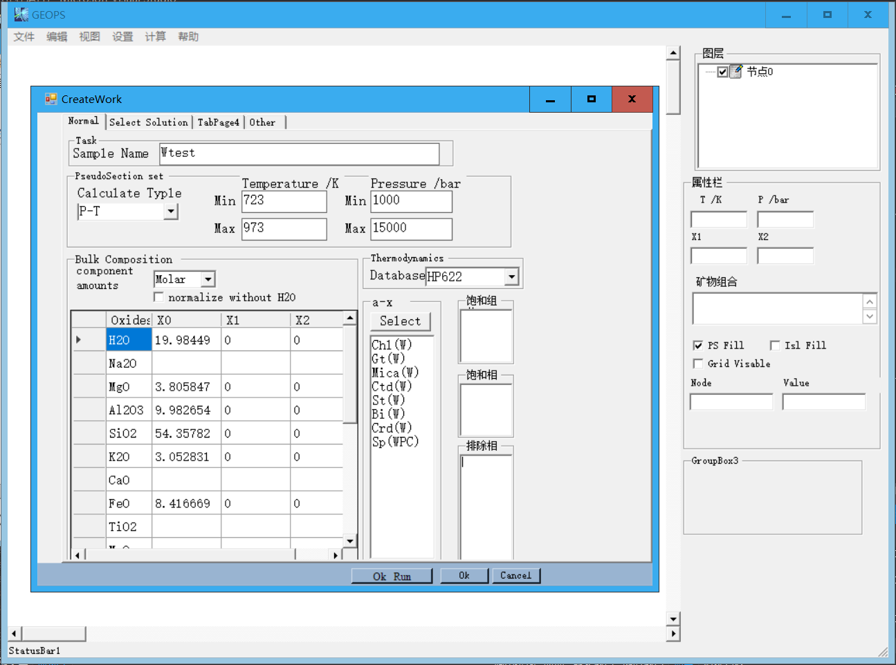选择计算视剖面图的类型: P-T、 P-X、T-X、X-X